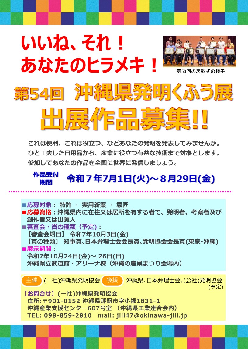 「第54 回 沖縄県発明くふう展」出展作品募集中です!